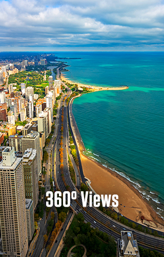 Experience the impressive panoramic views of the Chicago skyline and Lake Michigan from 1,030 feet above the famed Magnificent Mile at the 360 CHICAGO Observation Deck.