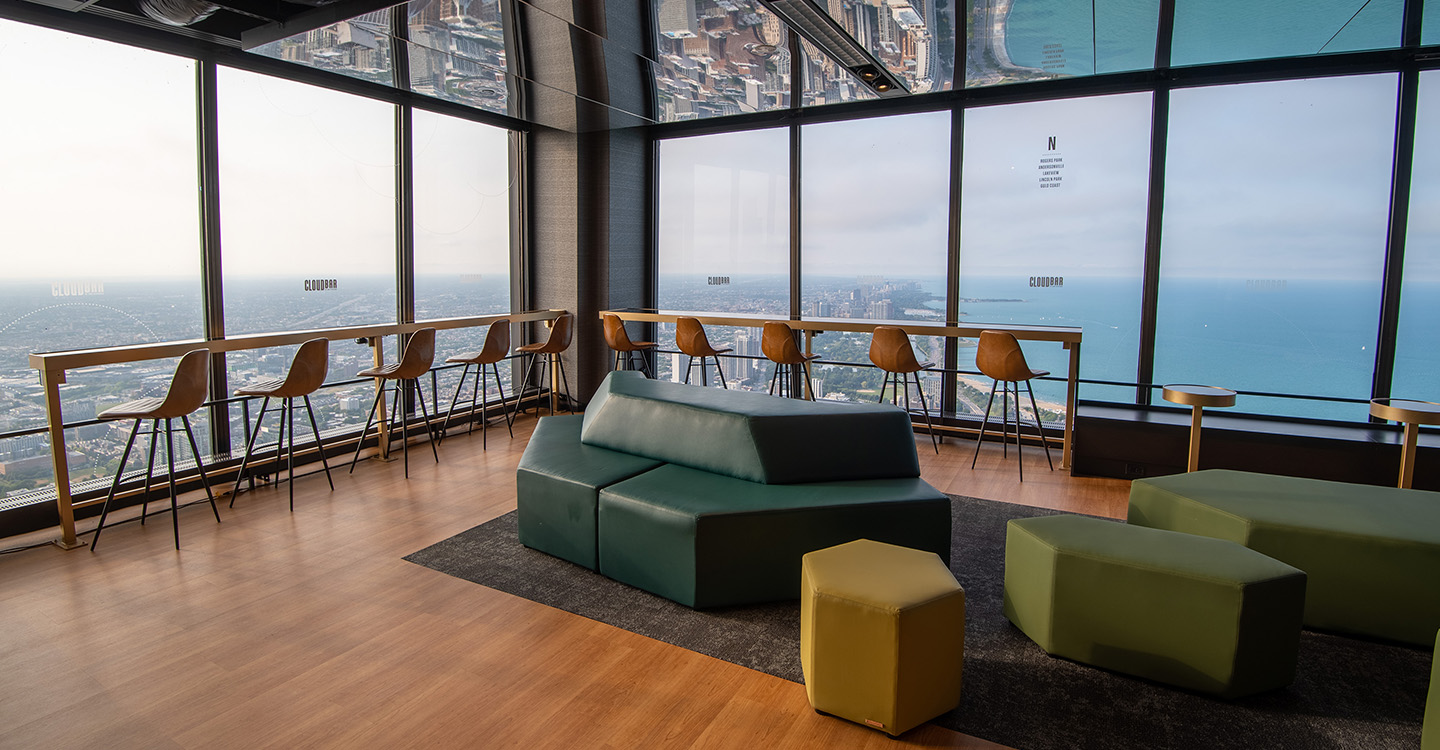 Welcome to CloudBar, where European design meets the Chicago skyline. Enter with a general admission ticket and stay as long as you like. Unwind with panoramic vistas, handcrafted beverages, and local snacks, or explore the Observation Deck with drink in hand.