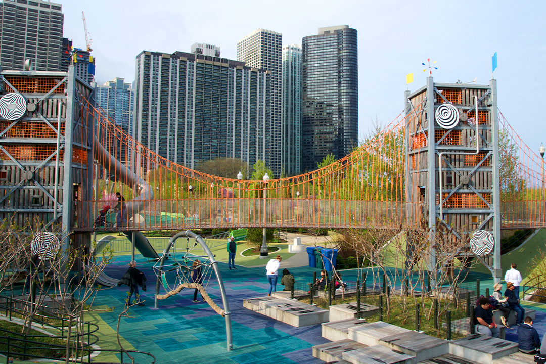 Parque Maggie Daley: No se trata del típico parque infantil del barrio. El Play Garden es un espacio enorme y fantasioso con zonas adaptadas a cada edad. El «Watering Hole» y «The Harbor» están pensados específicamente para los niños pequeños a los que les encanta esconderse y explorar.