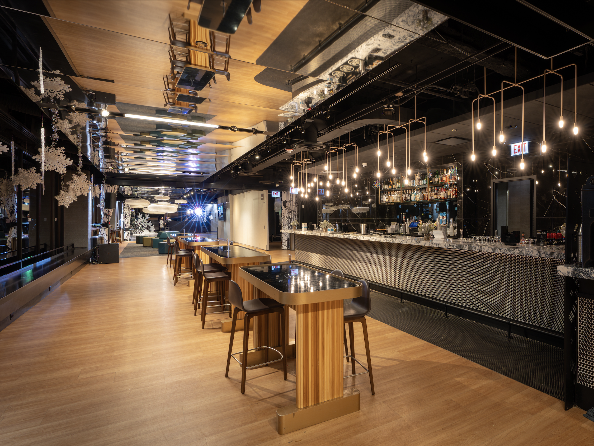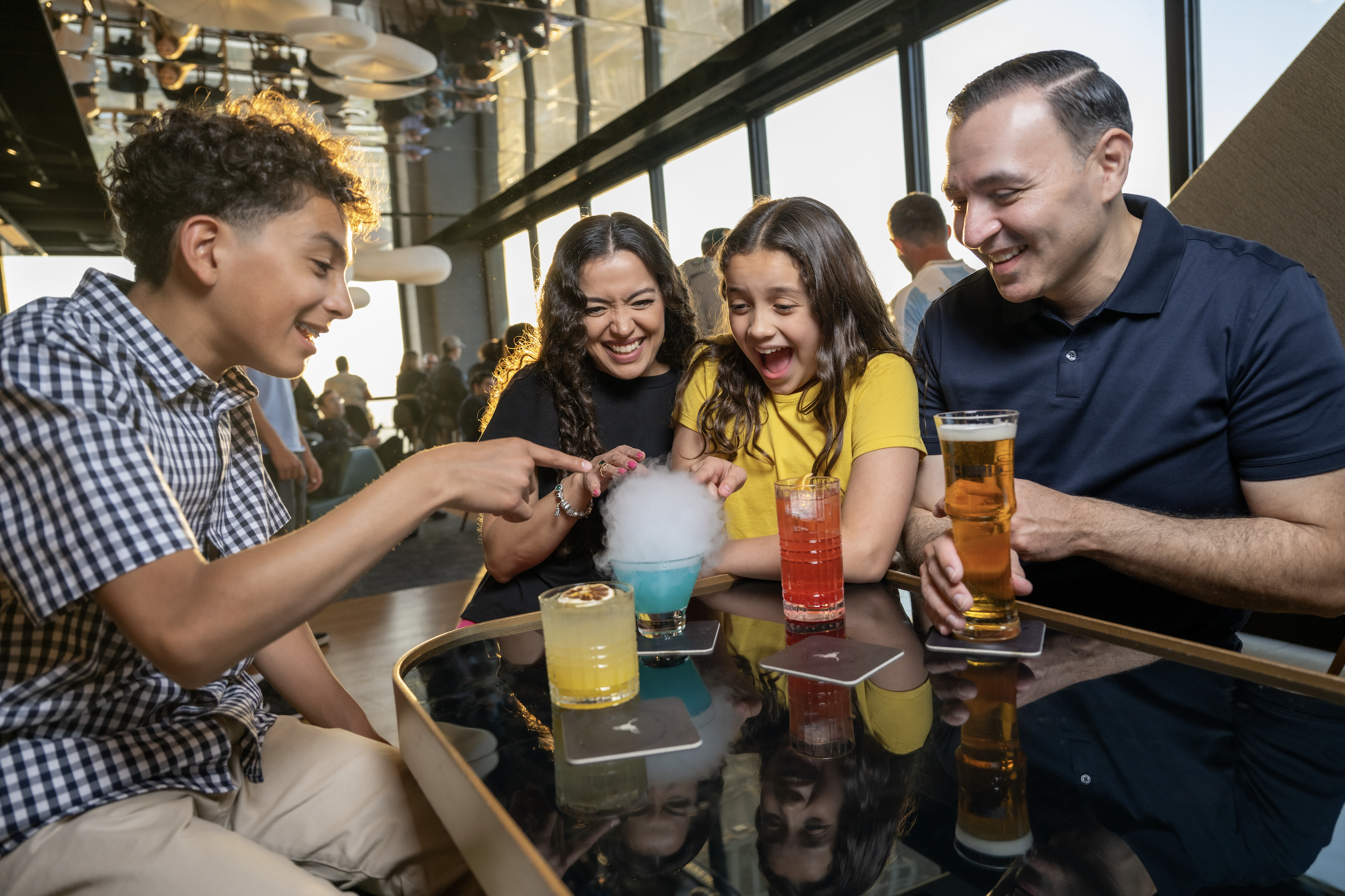 Chicago’s highest cocktail lounge is also located at 360 CHICAGO. CloudBar welcomes guests to grab a specialty cocktail or local brew and relax while enjoying the unbeatable views, day or night. The cocktail menu is inspired by Chicago’s neighborhoods, like the “Heavenly Martini,” inspired by the Kit Kat Lounge in Lakeview, the “Gold Coast Manhattan” inspired by Gold Coast, and “The ‘L’ Fashioned” inspired by The Loop. Local brews are on tap, while coffee options from Chicago-made Kikwetu Coffee and mocktails are also available. The vibrant atmosphere has been described as “European design meets Chicago’s neighborhoods in the clouds.”